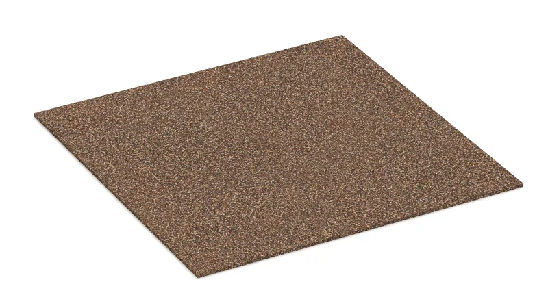 Die Gummigranulatplatte wird aus Gummigranulaten und einem dauerelastischen Bindemittel hergestellt. Die Oberflächenstruktur ist abhängig von der Sieblinie, d.h. von der Korngrößenverteilung des Gummigranulats und der Dichte der Platte.