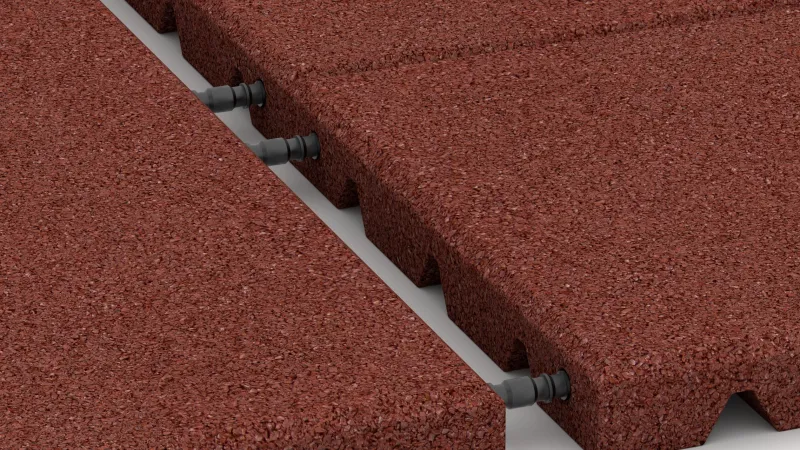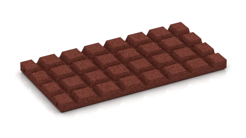 Die halbe Platte ist eine sinnvolle Ergänzung zur Gummigranulat-Platte Typ FS bei der Anlage von Flächen mit rasterkonformen Abmessungen (Länge und Breite jeweils als Vielfaches von 50 cm). Die Platten Typ FS müssen im Halbversatz und unter Zuhilfenahme von Streckverbindern verbaut werden. Das bedeutet also, dass jede zweite Reihe mit einer halben Platten beginnt und mit einer halben Platte endet.