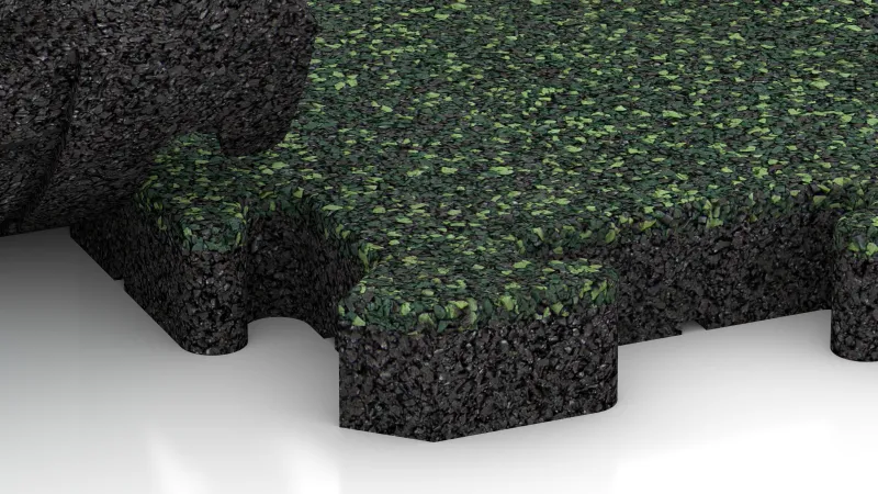 Da bi bila površina ne le funkcionalna, temveč tudi vizualno enotna, morajo kotne plošče natančno ustrezati ostalim ploščam. Zato se izdelujejo izključno iz istih plošč, ki se proizvedejo za posamezno naročilo – z enakim barvnim dizajnom, gostoto in materialom. Tako je zagotovljen harmoničen celoten videz. Kotne plošče se zato vedno izdelajo le v okviru naročila in se dobavijo skupaj z ustreznimi ploščami.