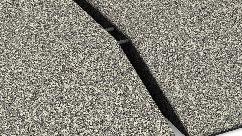 Ein typischer Anwendungsfall ist eine mit Fallschutzplatten ausgelegte Spielinsel in der gepflasterten Fußgängerzone oder auf dem asphaltierten Schulhof. Die Rand-Platte wird immer mit dem Untergrund verklebt und stabilisiert dadurch auch die Gummigranulat-Plattenfläche.
