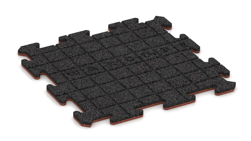 Na voljo je v dveh formatih: 50 × 50 cm in 100 × 100 cm. Obe različici imata puzzle spoj z zaobljeno fazo, ki je natančno oblikovan med stiskanjem plošč, kar zagotavlja stabilno povezavo in urejen, enoten videz fug. Format 50 × 50 cm je idealen za manjše notranje površine ali zunanje površine do približno 30 m², npr. pred košarkarskim košem. Večji format 100 × 100 cm je namenjen izključno uporabi v notranjih prostorih ali na pokritih površinah – kot so telovadnice, šotori ali poslovni prostori. Oba formata sta primerna tudi za začasne ali mobilne postavitve, na primer pri dogodkih.