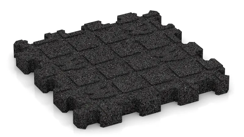 Plošče merijo 30,6 × 30,6 cm in so na voljo v debelinah 2 ali 3 cm. Vsaka plošča ima natančen puzzle spoj brez posnetja, kar ustvarja izjemno tesen vzorec fug. To zagotavlja enakomeren odboj žoge in estetski, visokokakovosten videz. Polaganje je enostavno na asfalt, beton ali ustrezno podlago (npr. plastična mreža) in tvori stabilno, zaklenjeno površino – brez potrebe po posebnem orodju.
