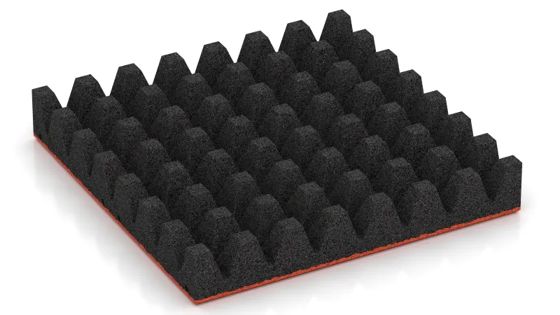 Plošča je sestavljena iz dveh slojev: skoraj 7,5 cm debele funkcijske osnove iz recikliranega granulata ELT (iz pnevmatik) in uporabne zgornje plasti iz novega, v masi obarvanega EPDM. Porozna površina EPDM je protizdrsna, UV obstojna, odporna na obrabo in prijetna za stik s kožo. Spodnja stran je oblikovana z obrnjeni piramidnimi strukturami, ki razpršijo udarno energijo in delujejo kot drenažni sloj. Tako se prepreči zastajanje vode in površina se hitreje osuši.